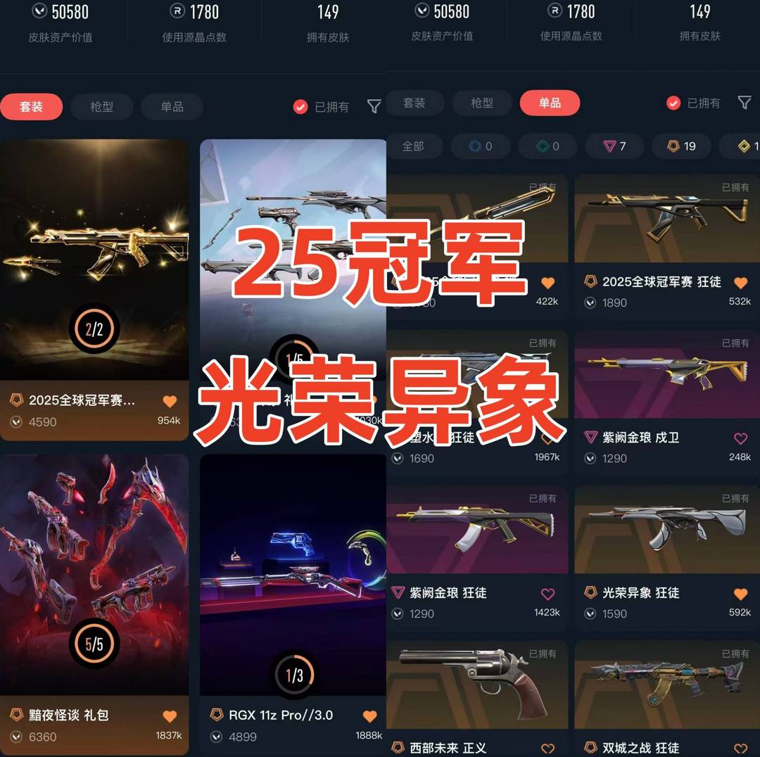 可排✅25冠军套光荣异象⭐塑水宗紫金混沌双城之战⭐显卡爪威龙之刃⭐古神天界莲花幻影⭐西部奇点正义