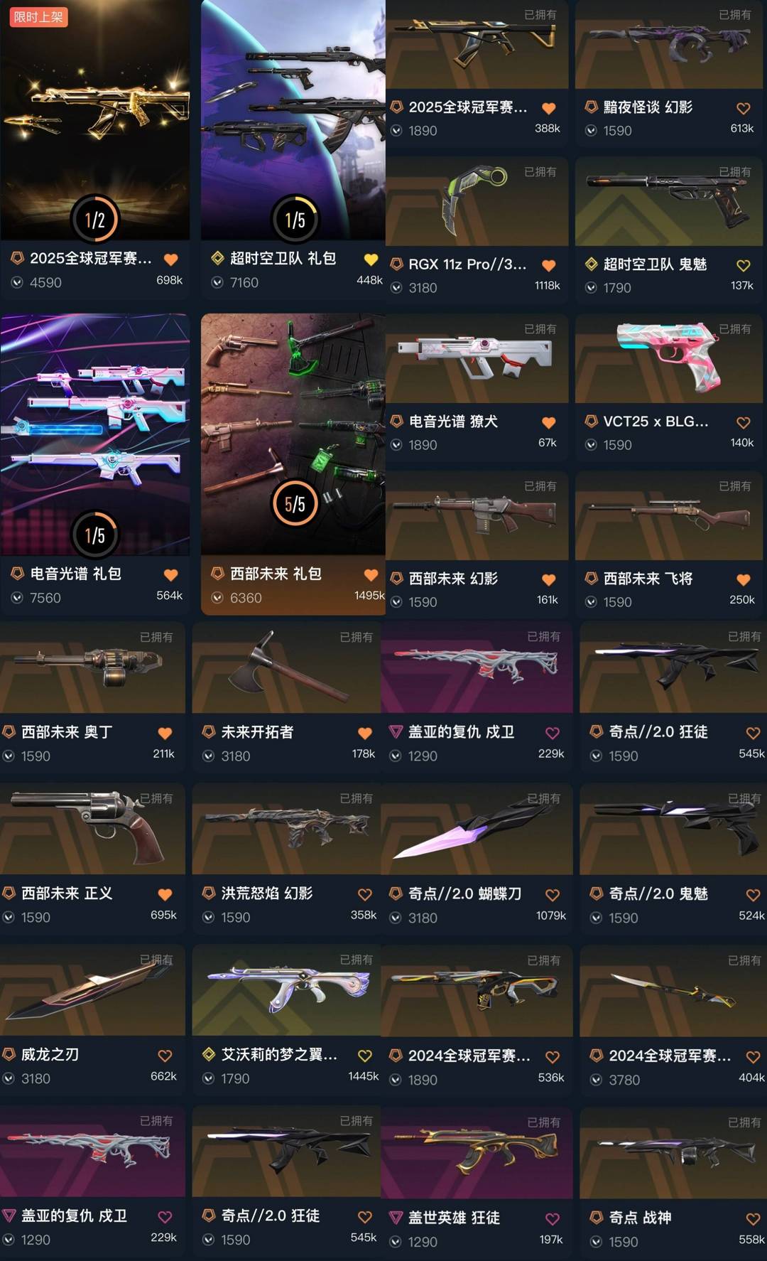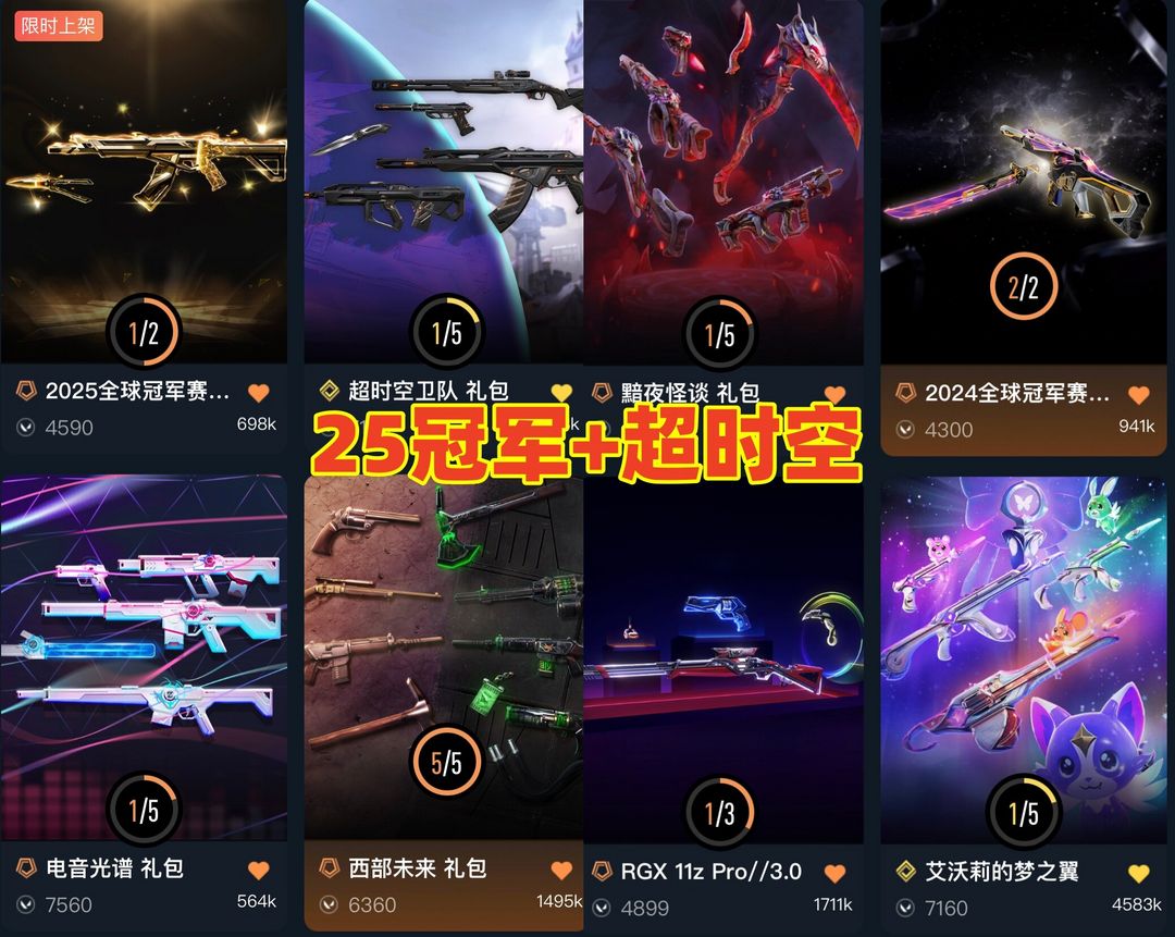 可排❤️25冠军超时空24冠军套❤️猫猫梦之翼猴子❤️显卡爪蝴蝶刀威龙之刃❤️西部未来电音光谱洪荒