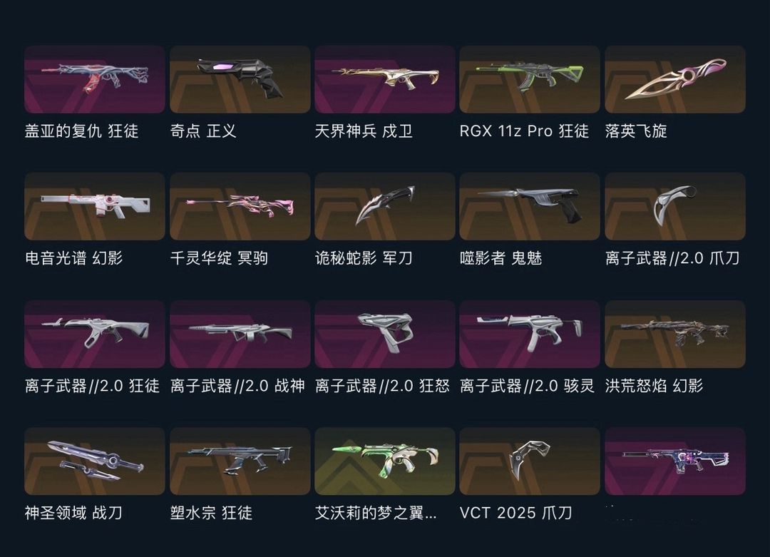 可排✅盖亚离子2.0塑水宗显卡狂徒★vct爪刀落英飞旋离子爪刀★电音光谱洪荒怒焰★奇点正义天界戍卫