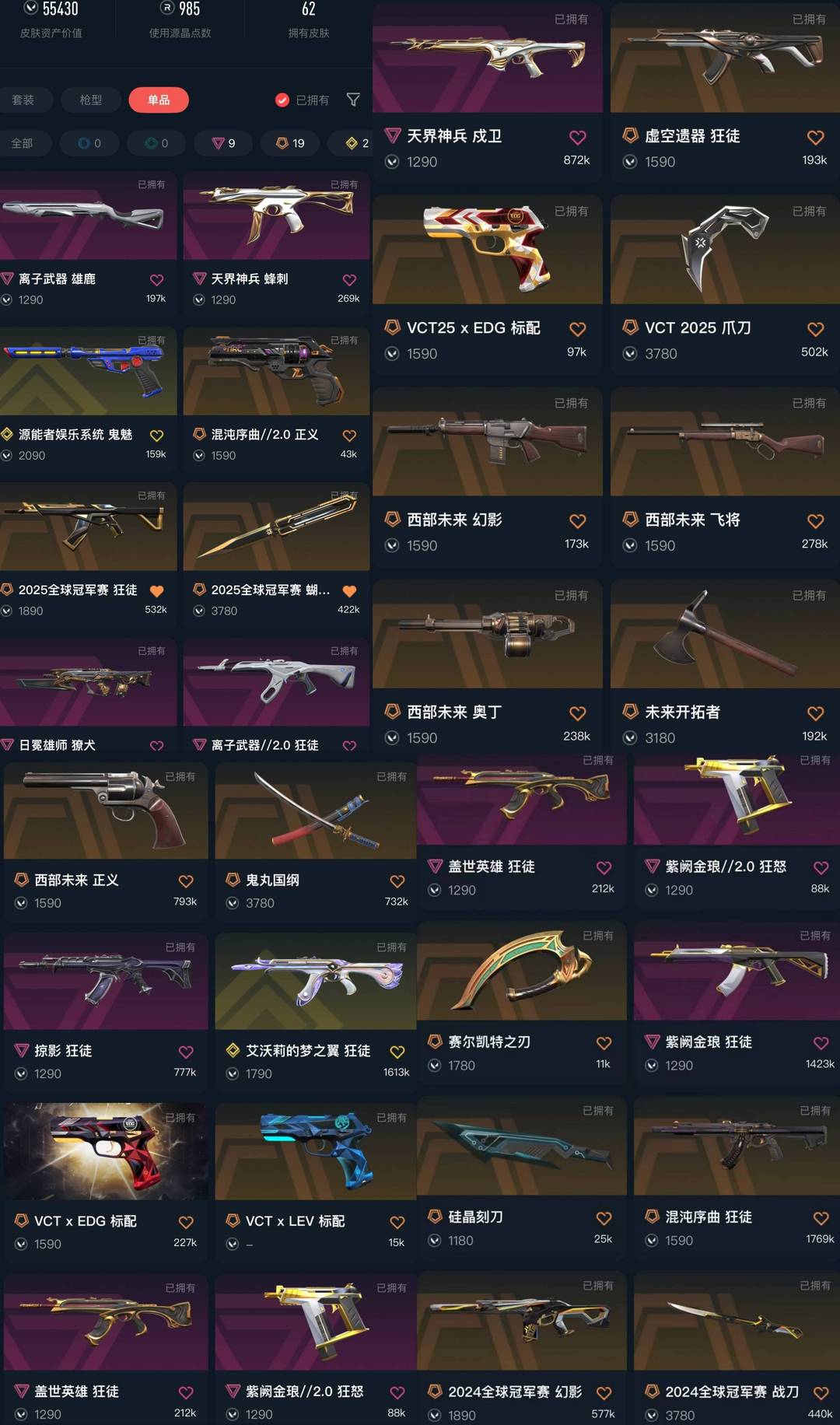 可排✅2524冠军套✨离子2.0虚空遗器猫猫混沌紫金掠夺猴子狂徒✨VCT爪刀般若太刀✨西部未来正义