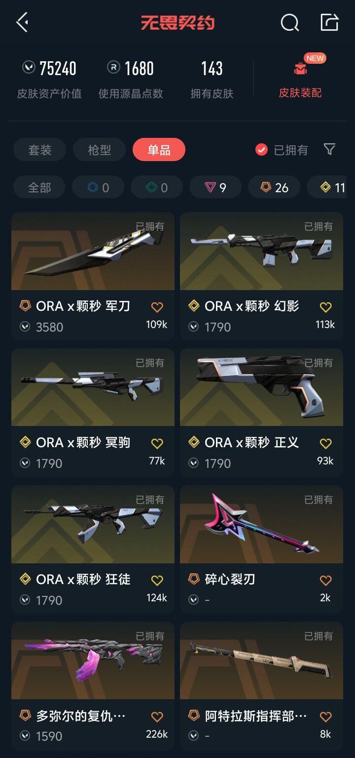 冻结点号主解冻ORA颗秒套超时空卫队套VCT25爪刀22冠军幻影24冠军战刀多弥尔狂徒侦察幻影