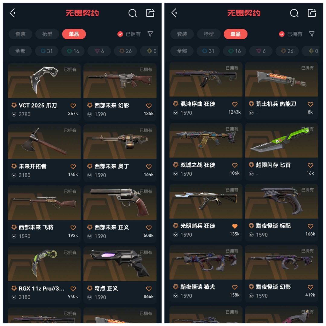 可排位9万库存噬影者套✨西部未来套✨VCT2025爪刀✨混沌/盖亚/掠影AK✨RGX显卡刀✨黯夜套奇