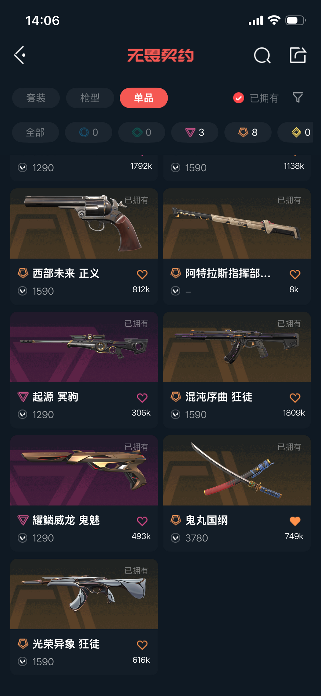 可排位⭐鬼丸国纲太刀⭐光荣异象狂徒⭐洪荒怒焰狂徒⭐混沌狂徒⭐侦查幻影⭐黯夜幻影⭐西部正义⭐起源冥驹⭐