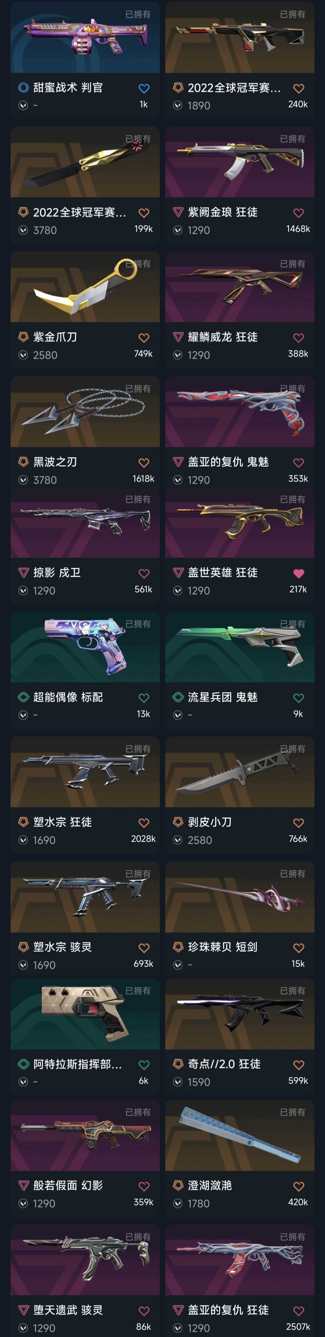可排位6万库存⭐️22冠军套⭐️盖亚塑水宗紫金⭐️奇点2.0掠影⭐️般若面具黑波之刃⭐️紫金爪刀