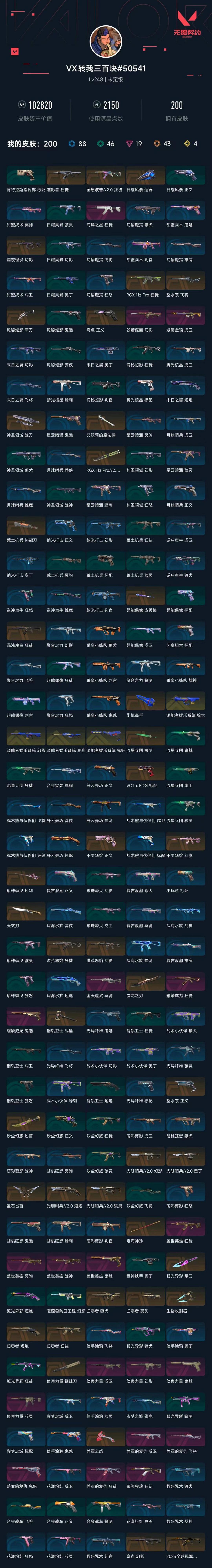 武器皮肤数量:200