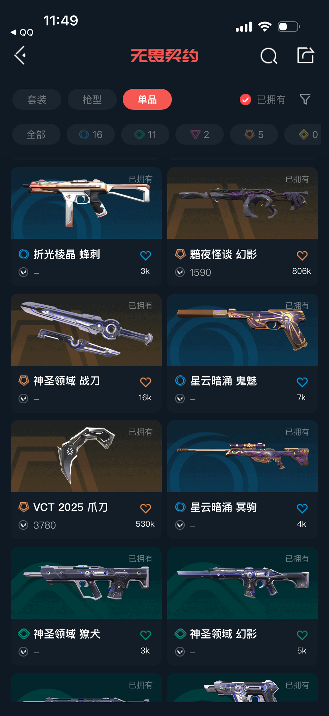 可排位⭐VCT2025爪刀⭐混沌序曲狂徒⭐黯夜怪谈幻影⭐堕天遗武冥驹⭐天界神兵戍卫⭐