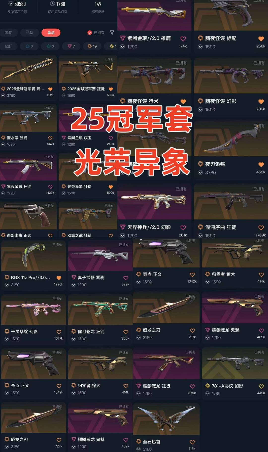 可排✅25冠军套光荣异象⭐塑水宗紫金混沌双城之战⭐显卡爪威龙之刃⭐古神天界莲花幻影⭐西部奇点正义