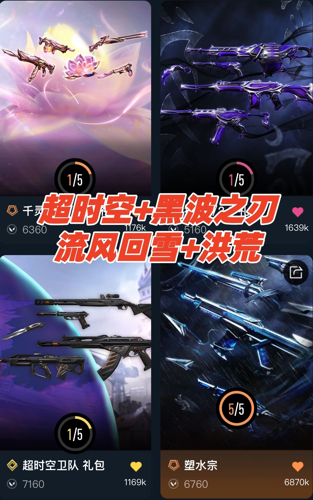 禁排✅4万⭐超时空卫队盖亚洪荒怒焰苍龙塑水宗摩托⭐黑波之刃流风回雪紫金爪⭐掠影紫金2.0⭐vct标配