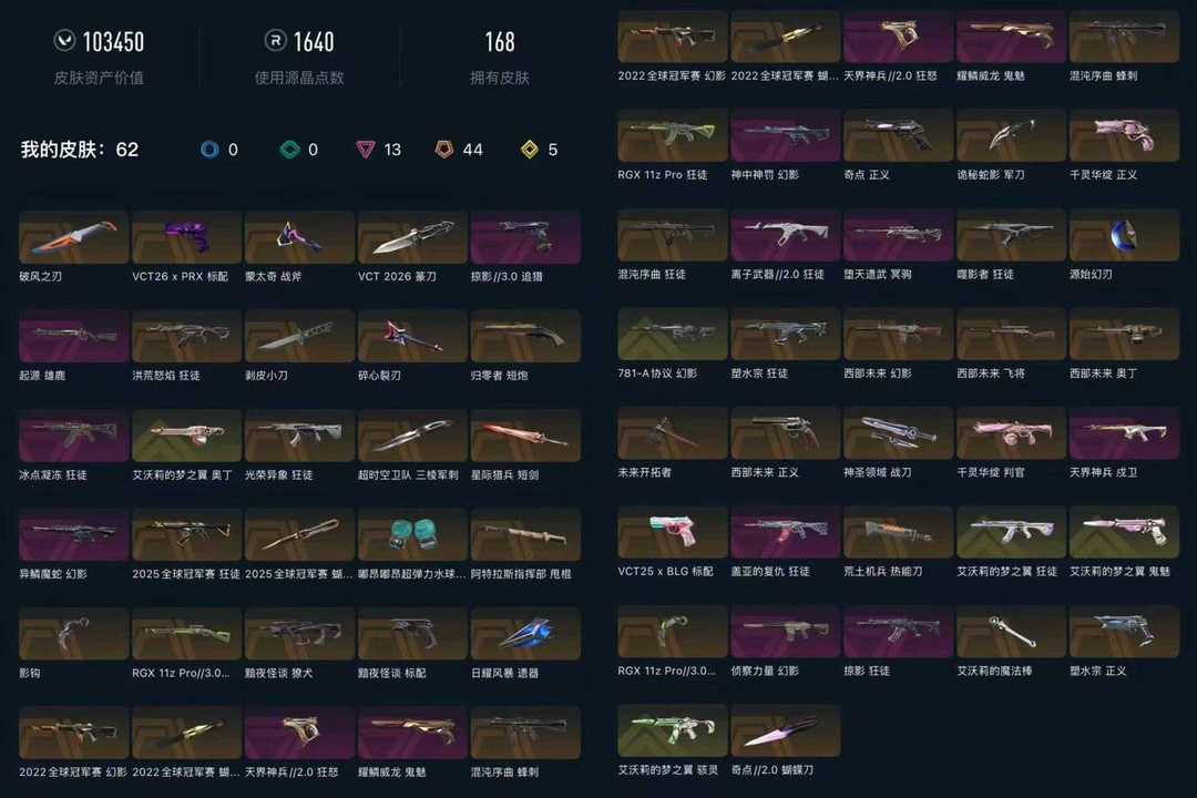 武器皮肤数量:168