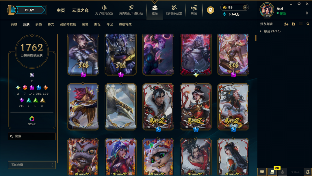 装备描述:1762原皮❤联盟不朽阿狸签名版❤联盟不朽卡莎签名版❤圣堂佛耶戈莫甘娜❤踏雪寻梅龙马烈焰套❤神话亚索