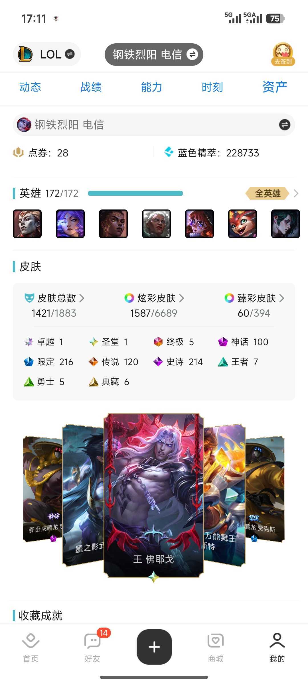 王 佛爷戈 2159P⭐️1400原皮⭐可排位⭐️带妹号♥ 新皮肤可用⭐️斗魂觉醒莎弥拉