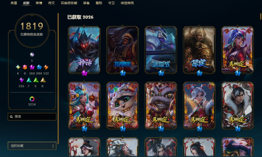1819皮3214炫222臻彩⭐满至臻神幻⭐3档卡莎⭐4圣堂⭐6色龙瞎⭐云顶4至臻33神话9神话棋盘