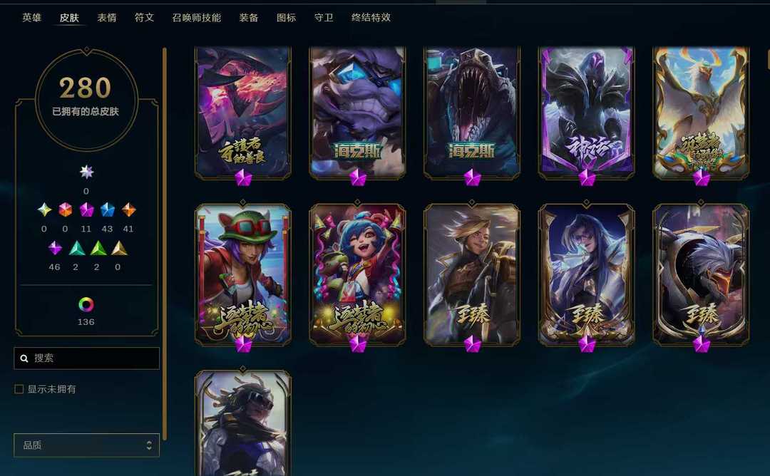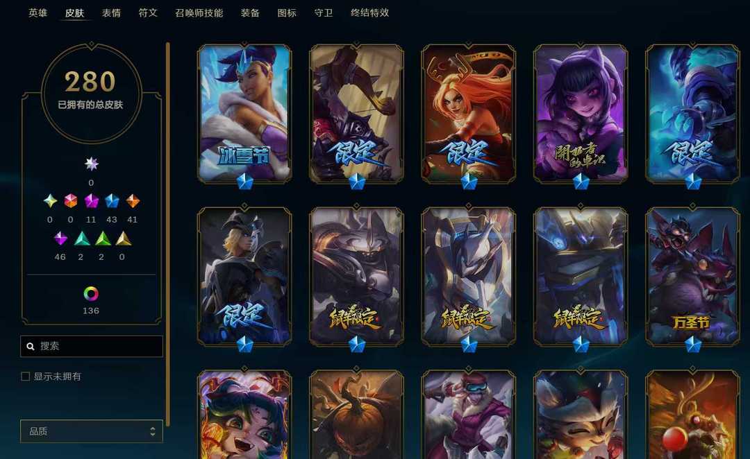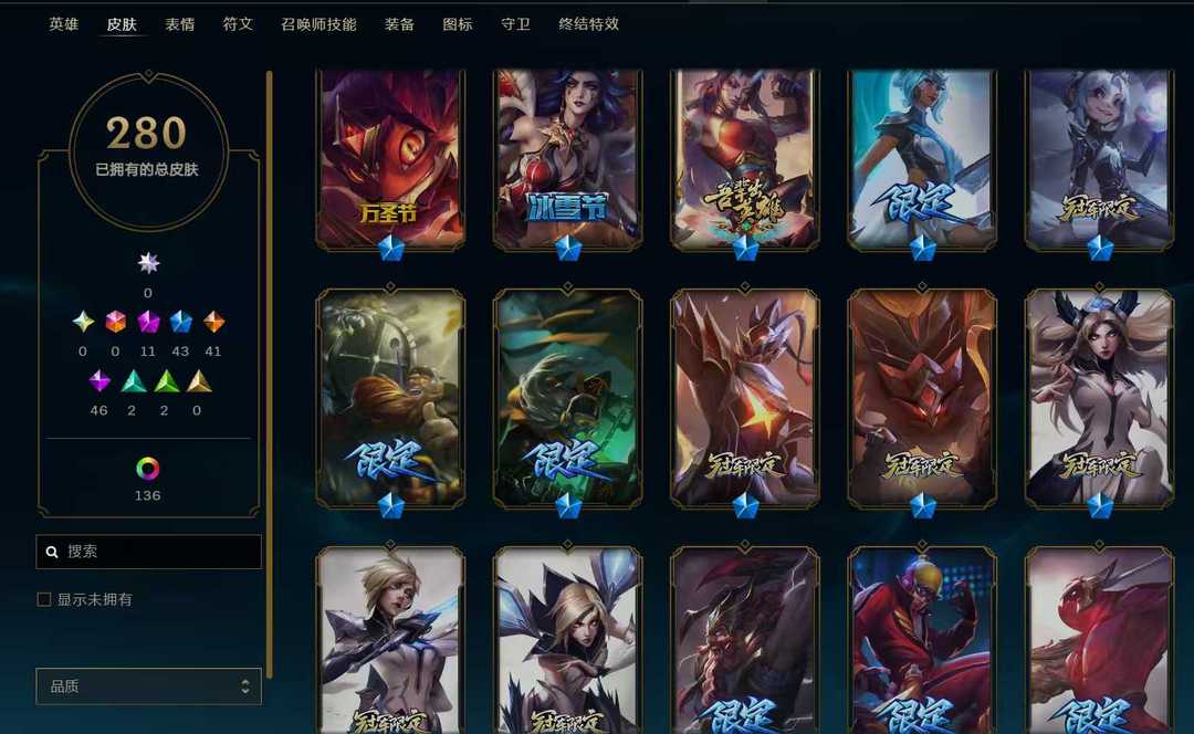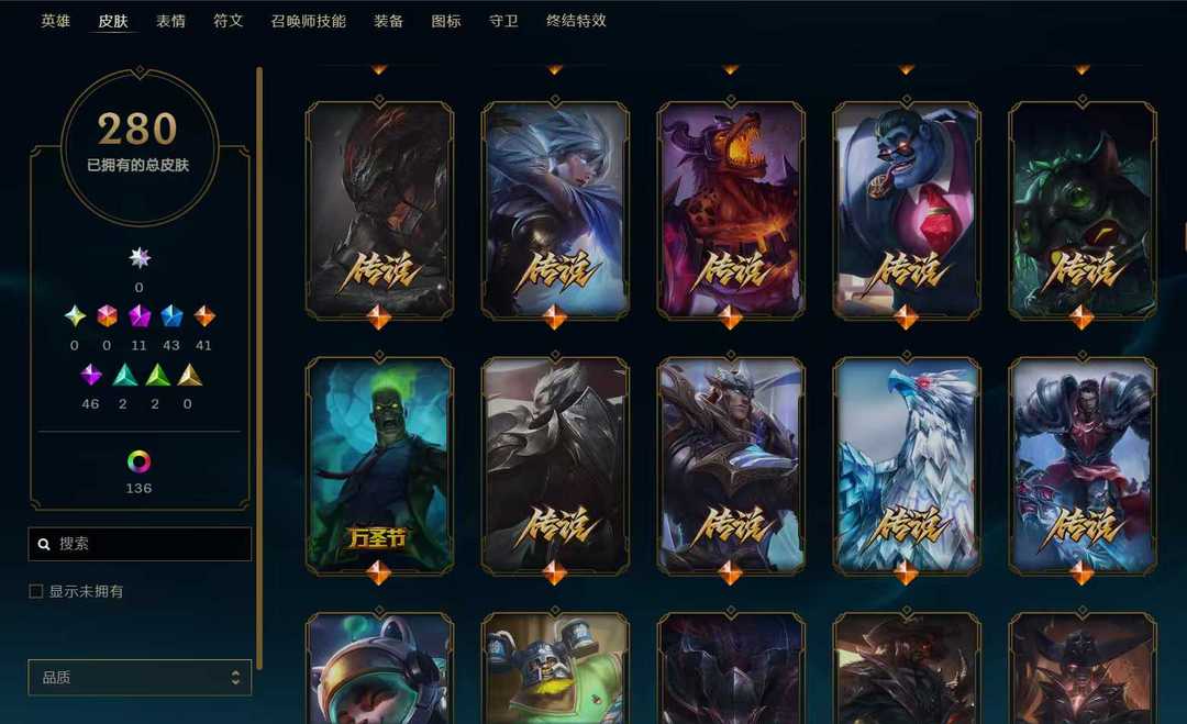 禁止排位⚡280原皮⚡11神话⚡灰烬派克海克斯鳄鱼心之钢永恩哥特萝莉机甲腕豪花木兰黑夜亚索神王诺手