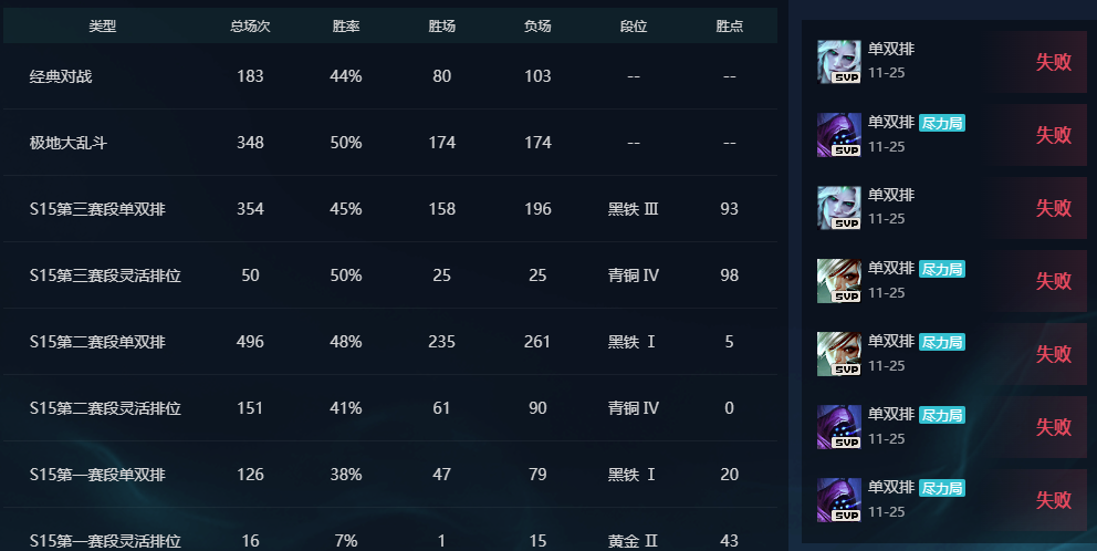 艾欧尼亚❤️500皮可排位❤️单双黑铁❤️灵活青铜❤️匹配负胜率极品虐菜号
