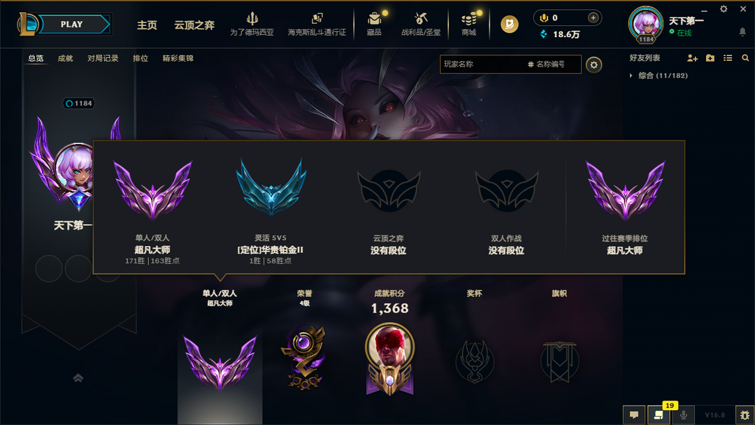 段位:1186级 超凡大师