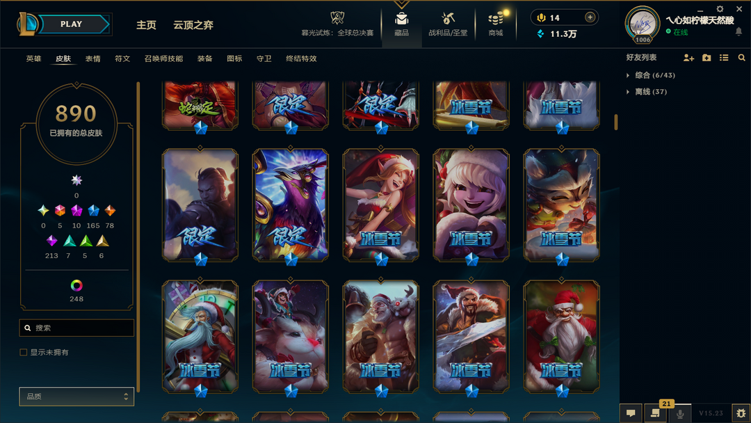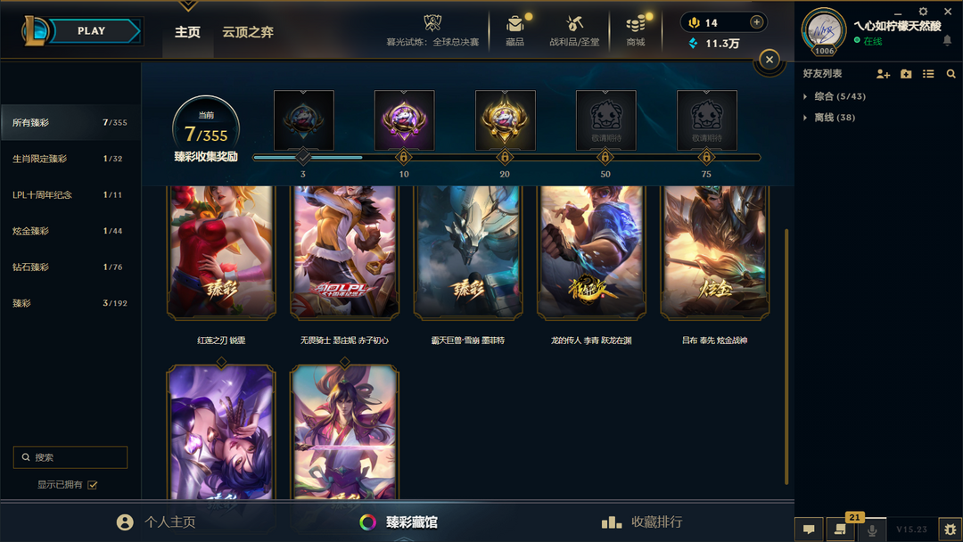 装备描述:❤7000皮肤【联盟三区】蓝龙瞎龙年全套⚡青年瑞兹⚡摄魂VN⚡IG全套⚡庆典女皇:青铜白银【真实黑铁】