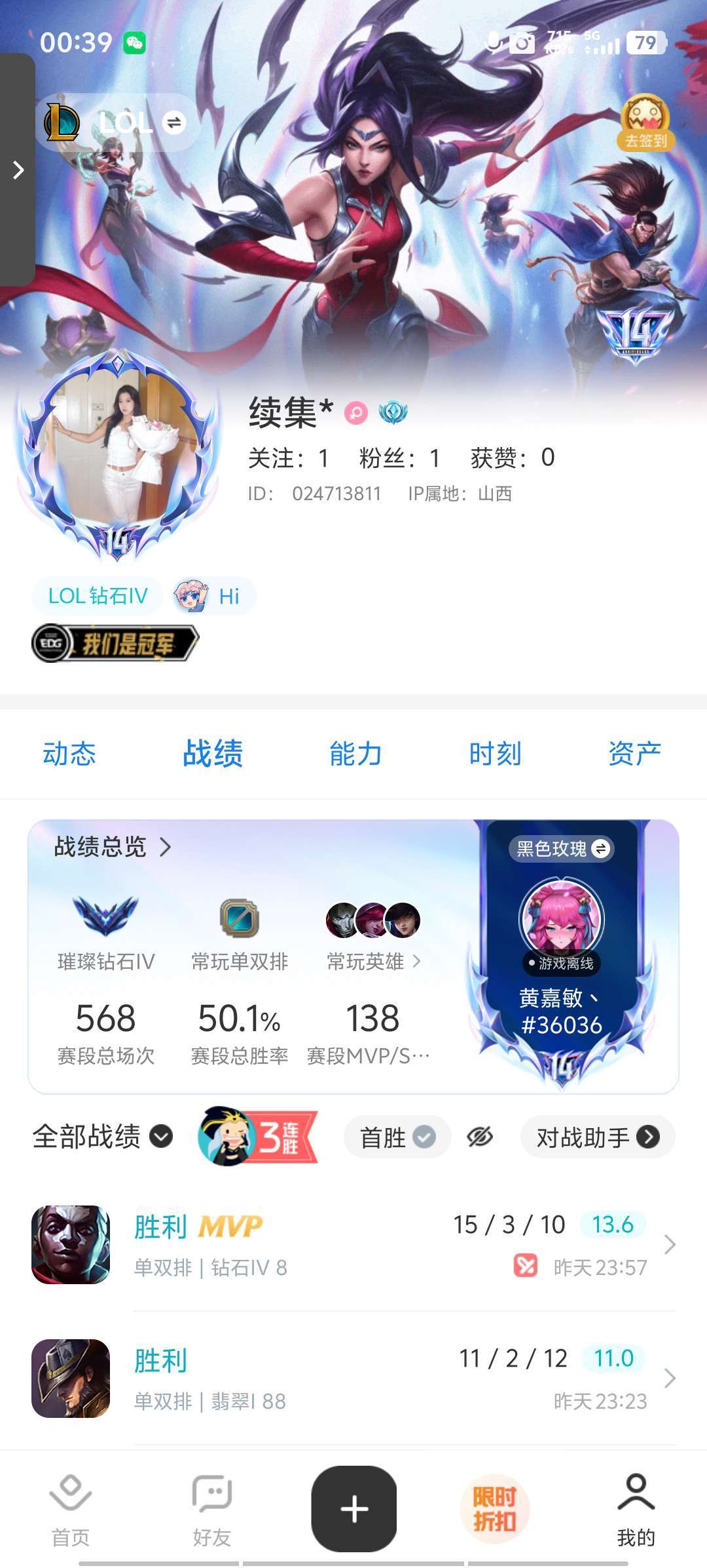 【黑色玫瑰妹子号】⭐钻石段可排位⭐战绩可查⭐稀有皮肤多真实皮400⭐可任何模式⭐希望大家不要挂机