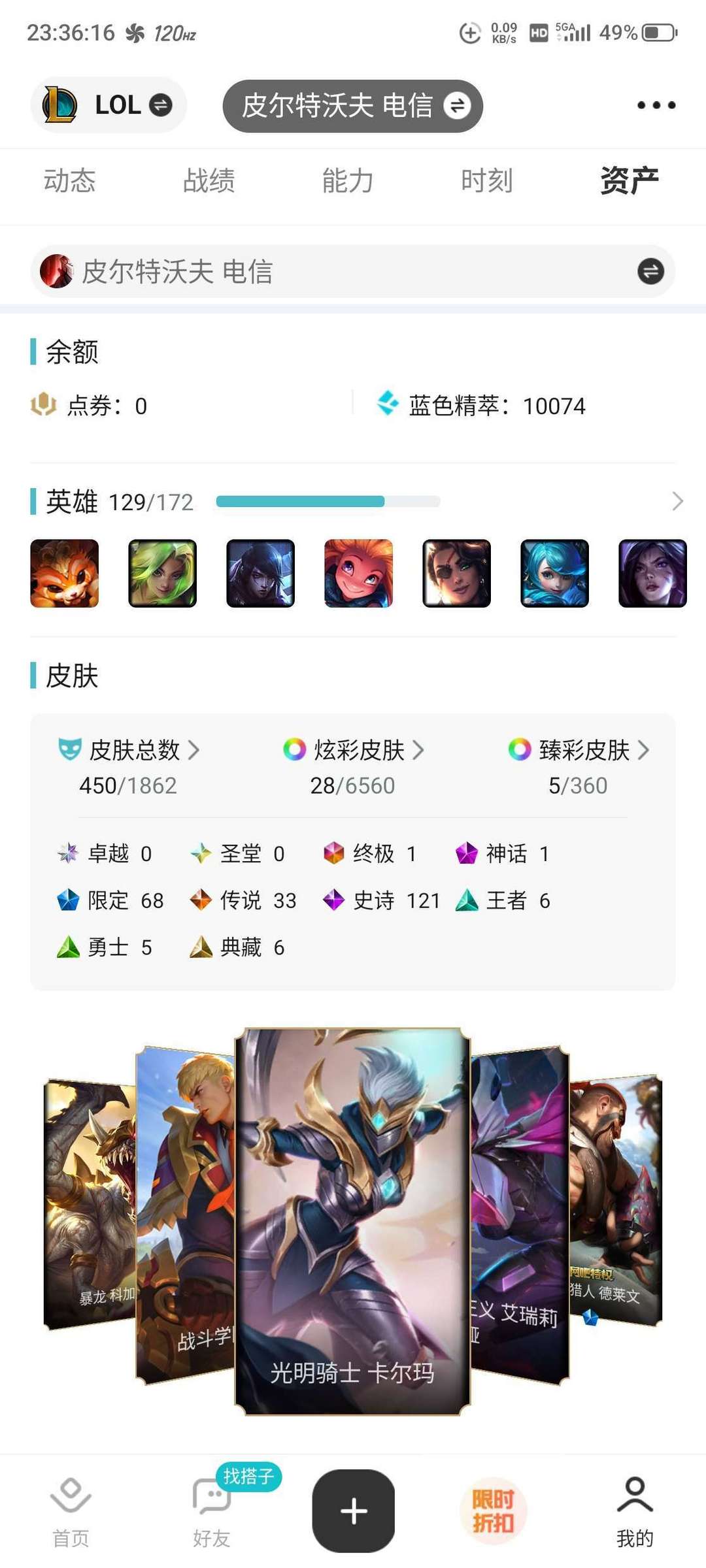 总共皮肤450。限定皮肤68个,传说33个,史诗皮肤121个