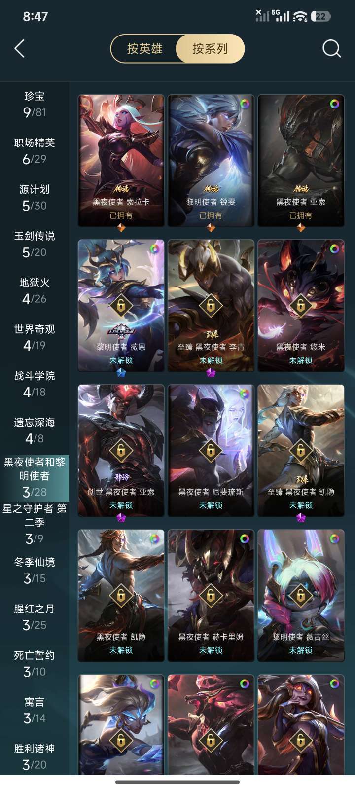 黑夜使者,黎明使者,神龙尊者,御剑仙等多皮肤+多限定+多传说非常值得试一下,段位低,好打