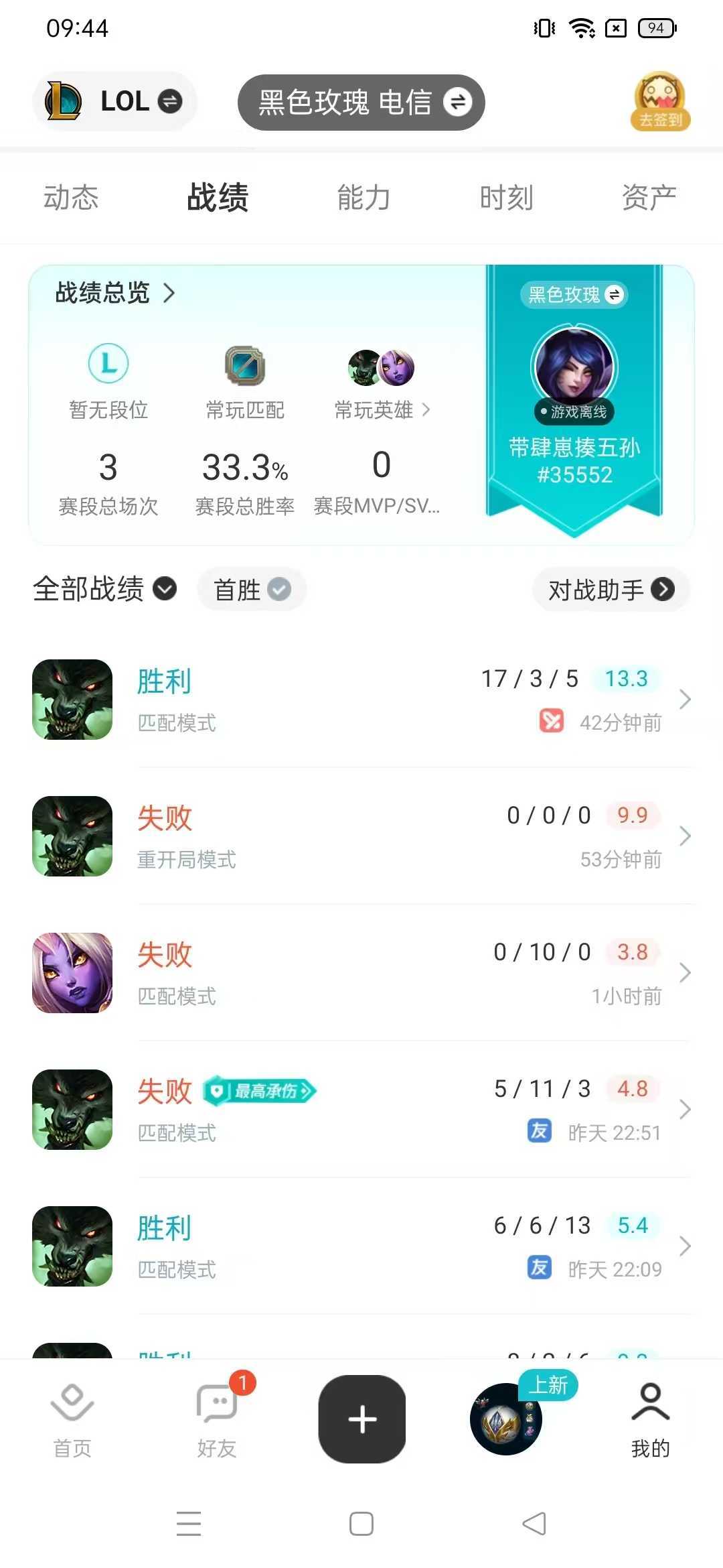 游戏区服:英雄联盟-黑色玫瑰-黑色玫瑰
