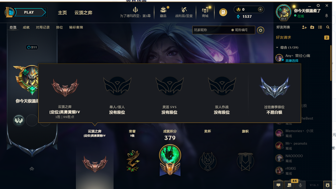 万年黑铁号,低隐藏分。可与朋友快乐双排也可自己虐菜。猛猛干兄弟们!!!!