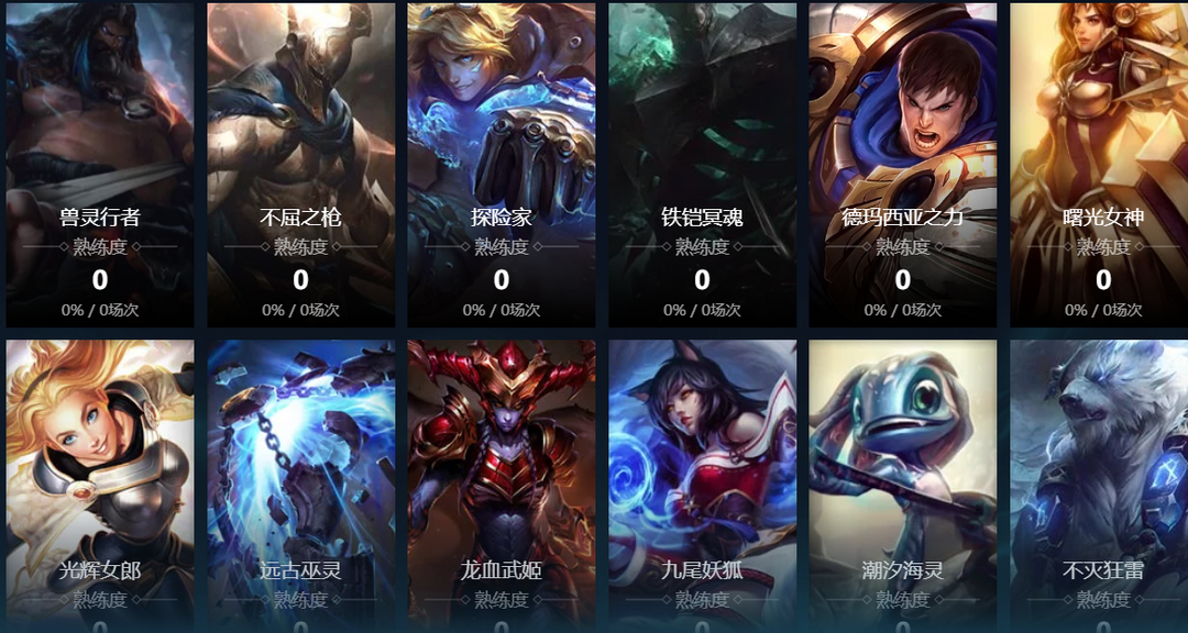 异画师;发条魔灵;符文法师;复仇焰魂;牛头酋长;德玛西亚之力;黑暗之女;诡术妖姬;无极剑圣;战争女神