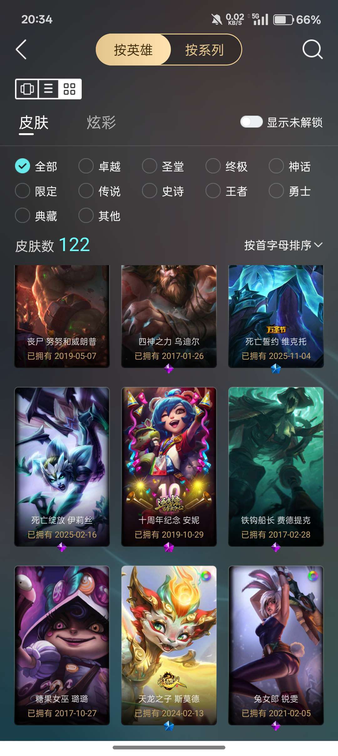 皮肤122,可以排位,全英雄。主玩蛮子胜率高。