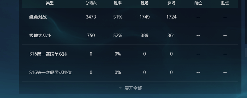 段位:733级 当前赛季无