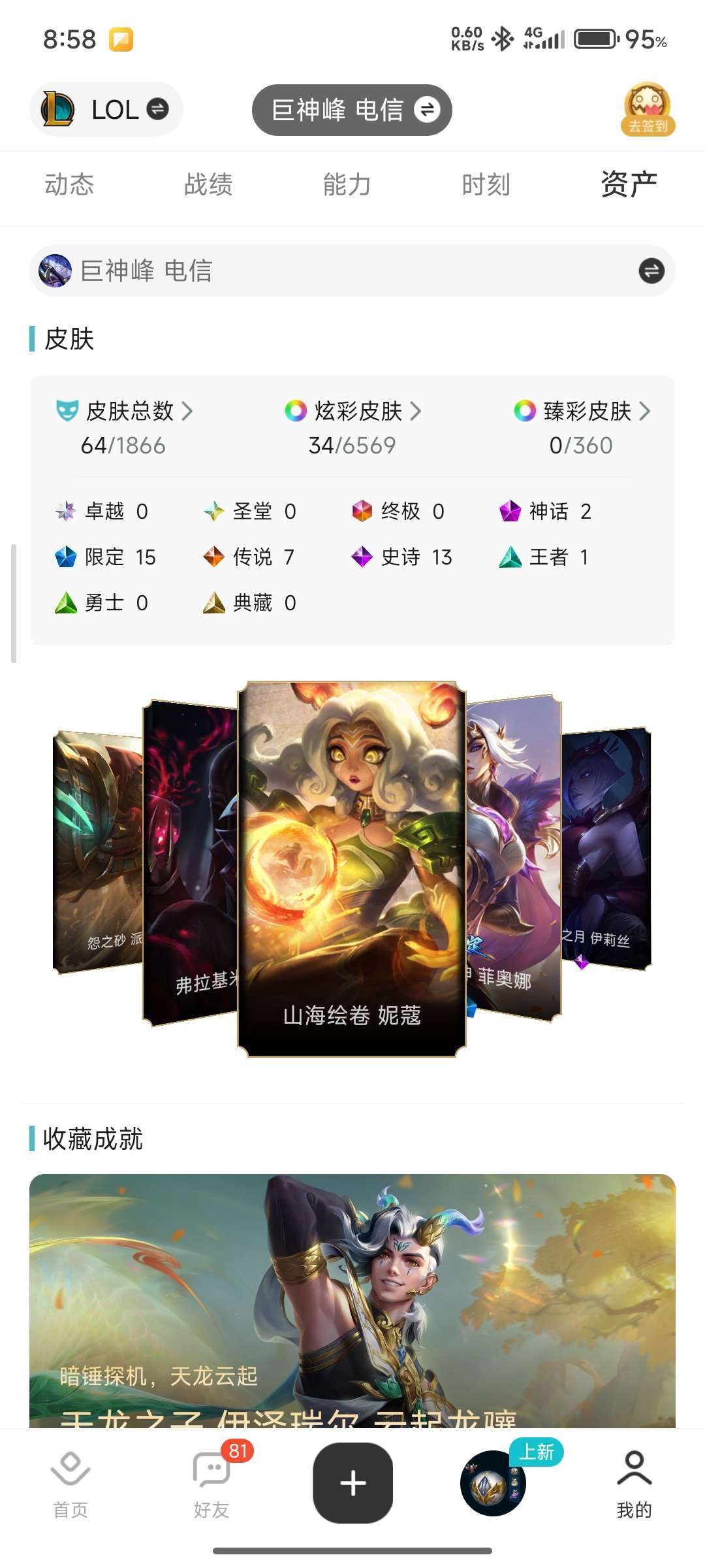 装备描述:63个皮肤全英雄盲僧熟练度高多个5级,可以玩盲神