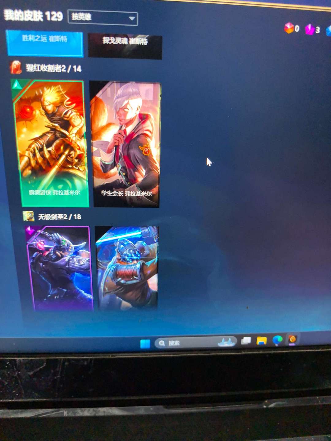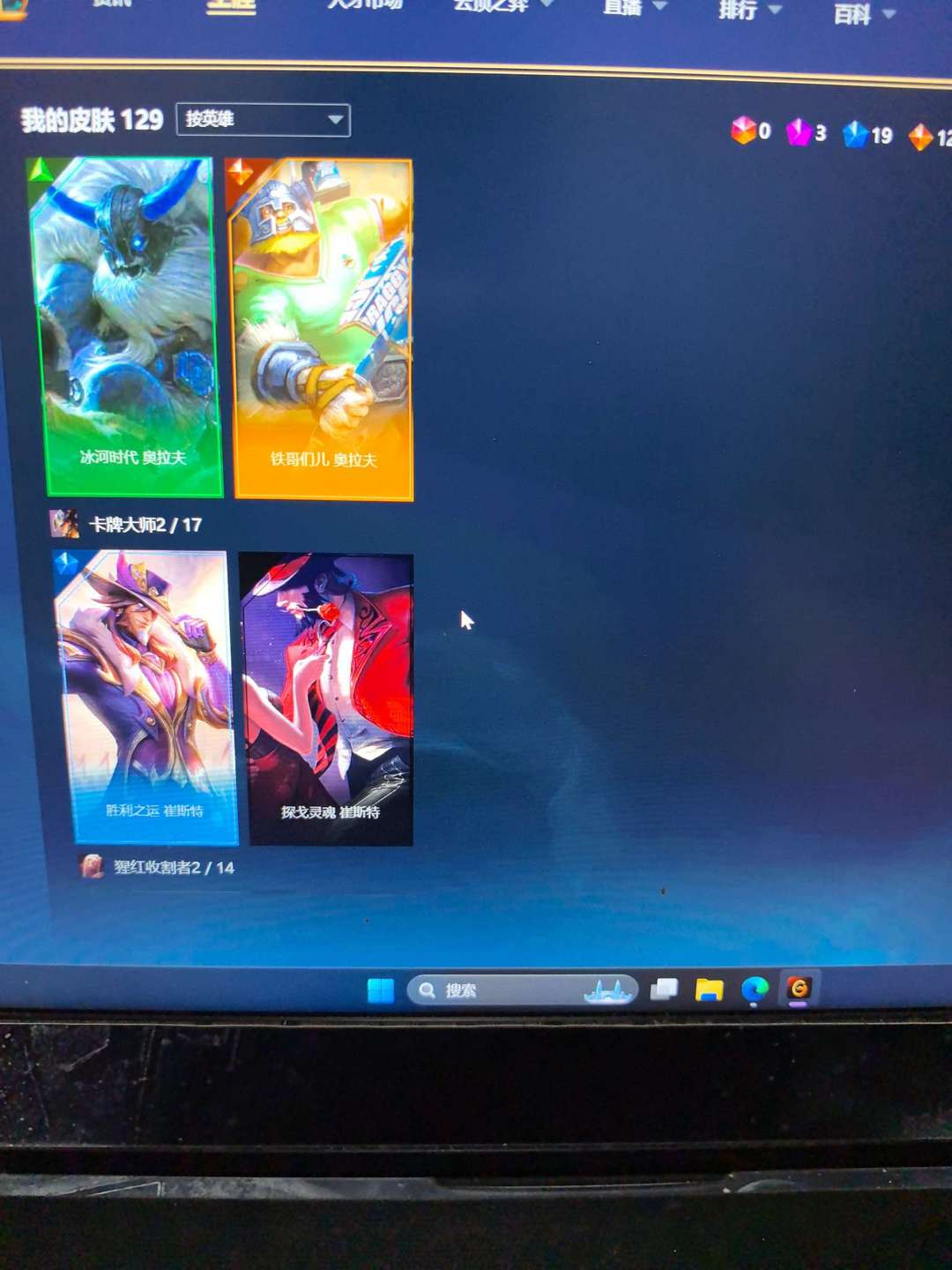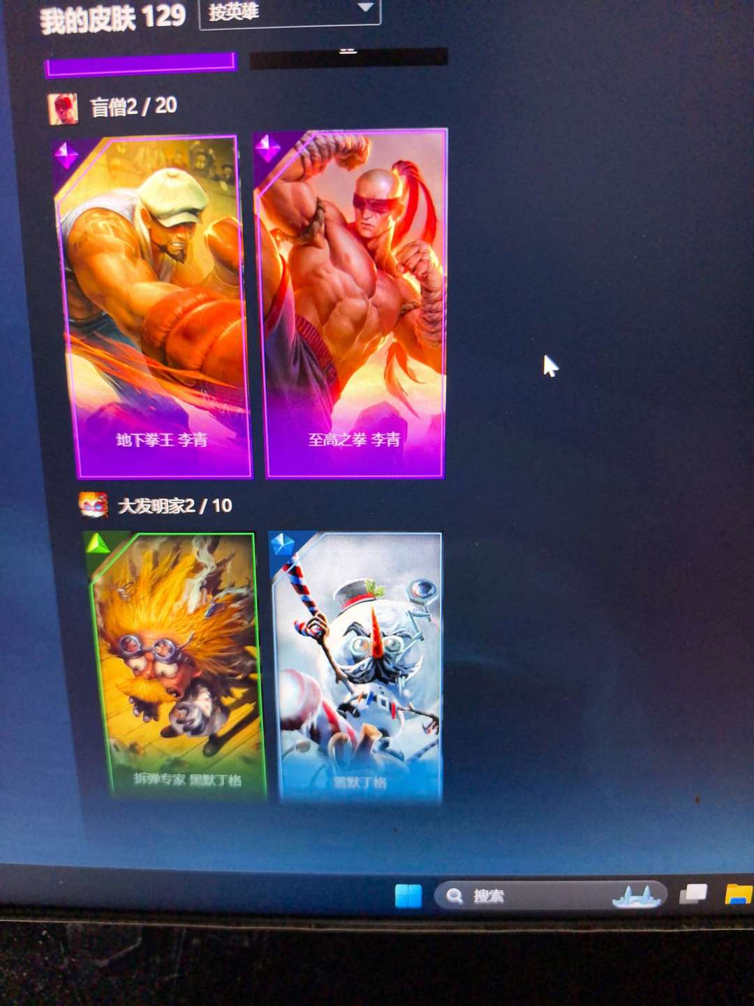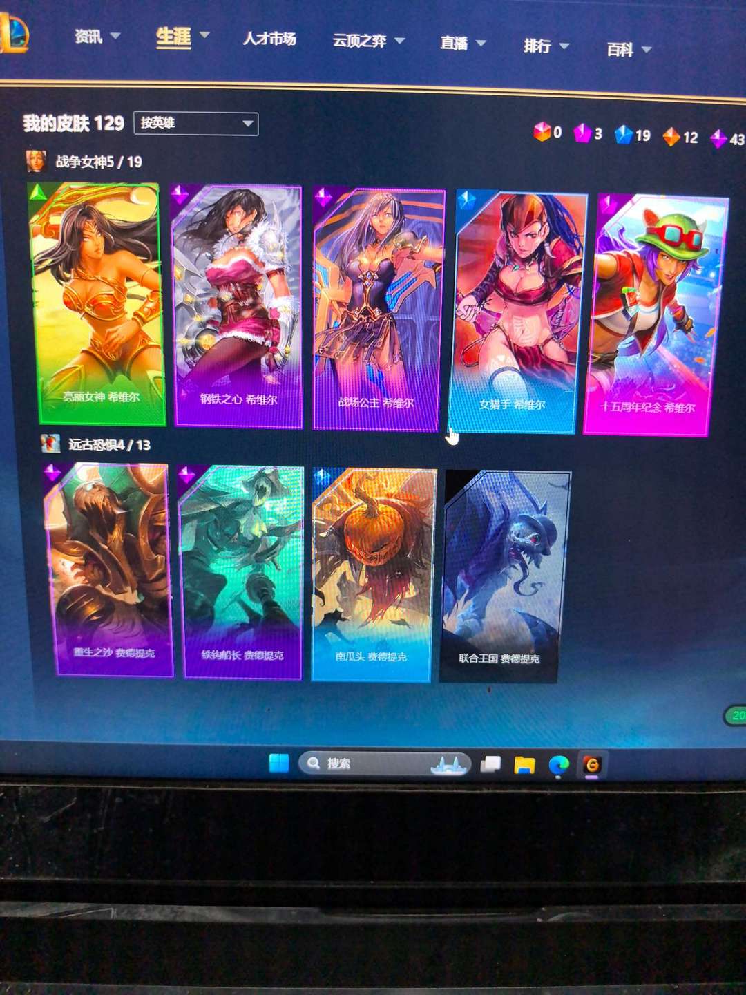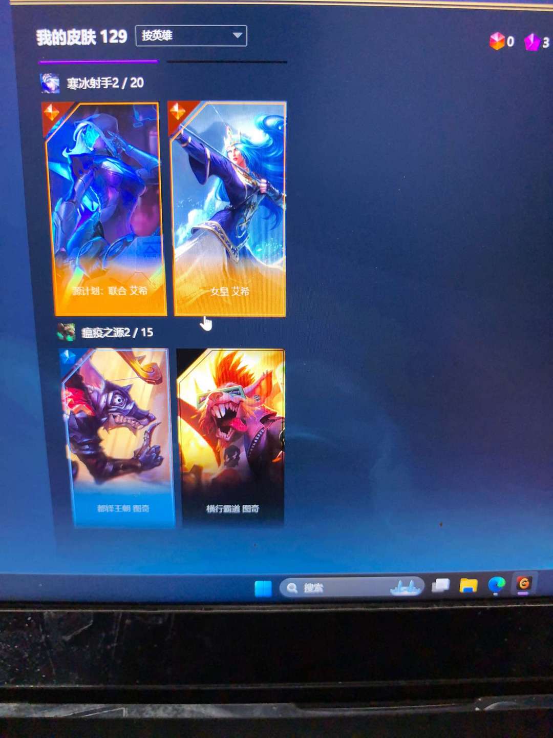 129个皮肤,基本做到每个英雄都有皮肤,具体可以看截图
