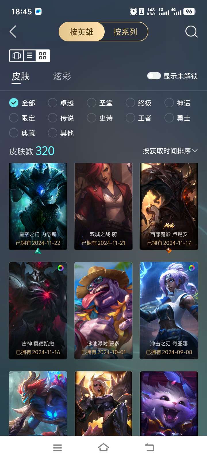 装备描述:无禁言,卡特:女帝,闭月之颜。瑞文:冠军之刃,玉剑传说。琪亚娜:女帝,西部魔影:卢锡安等等高质量皮肤