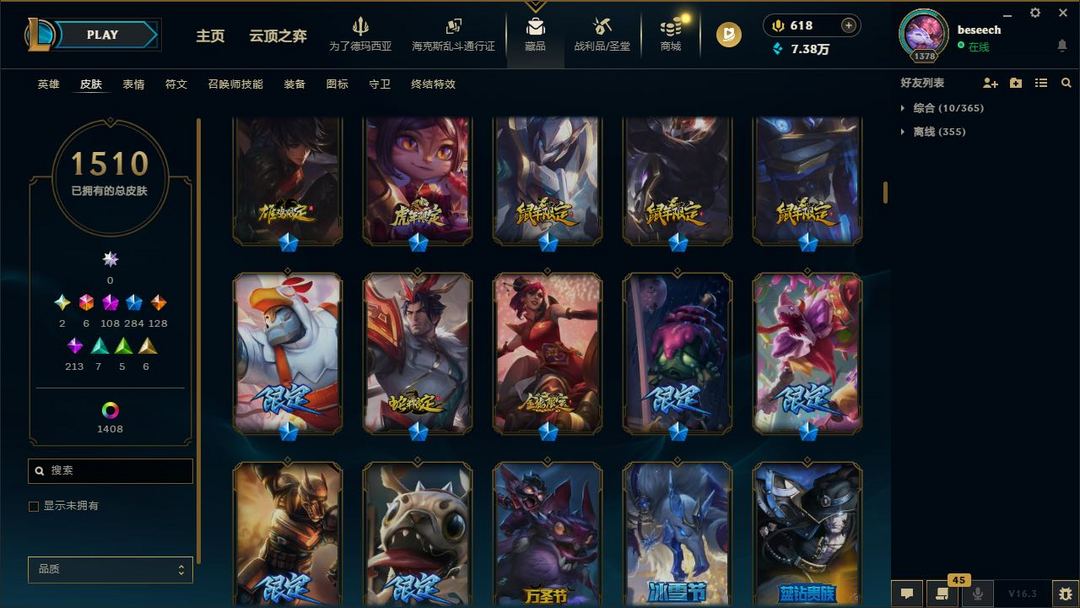 【LOL大王】3000P乄1510原皮乄1408炫彩乄王佛耶戈乄圣堂金克丝乄金鱼枫姬莲华温泉阿狸