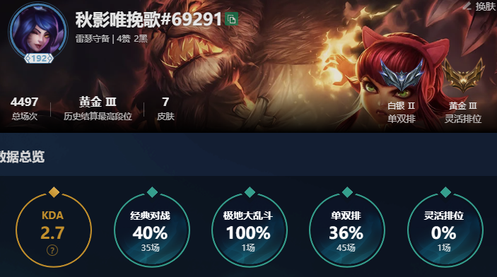 段位:194级 不屈白银II级 不屈白银II