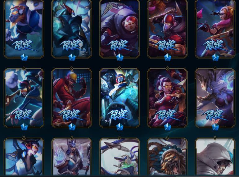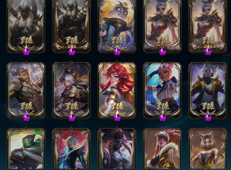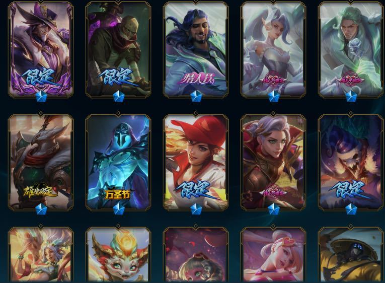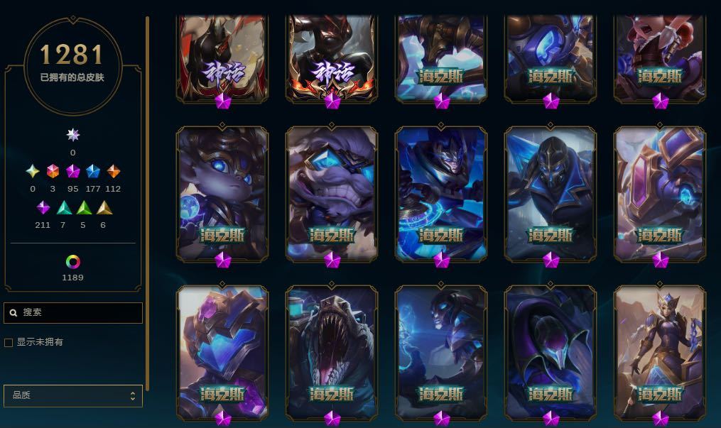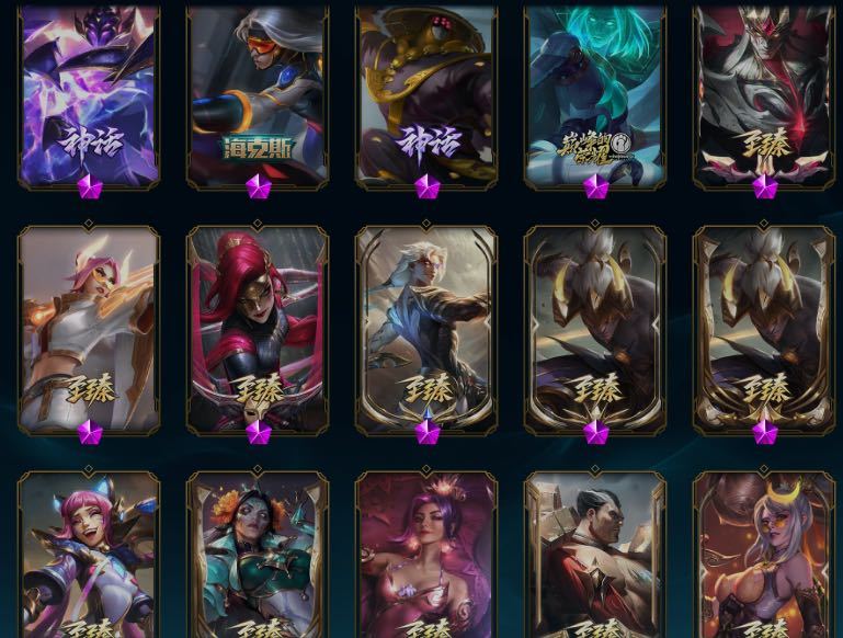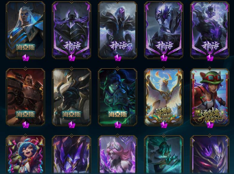全英雄,皮肤1281炫彩1328臻彩41全至臻海克斯各种年限皮肤海魔摄魂龙虾恐惧云顶神话棋盘神话英雄