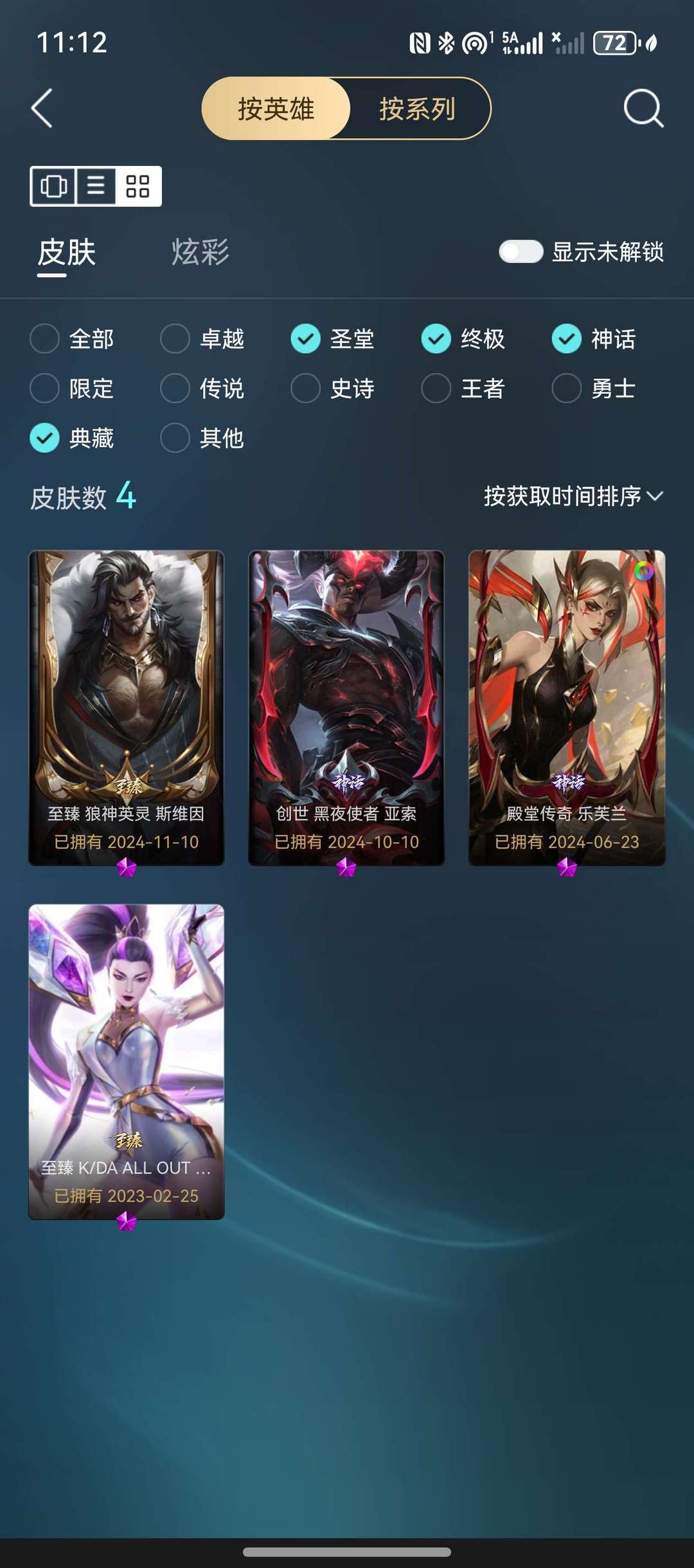 创世黑夜使者亚索 殿堂传奇乐芙兰 至臻狼神英灵斯维因 至臻KDA ALL OUT卡莎 卡莎星守炫彩