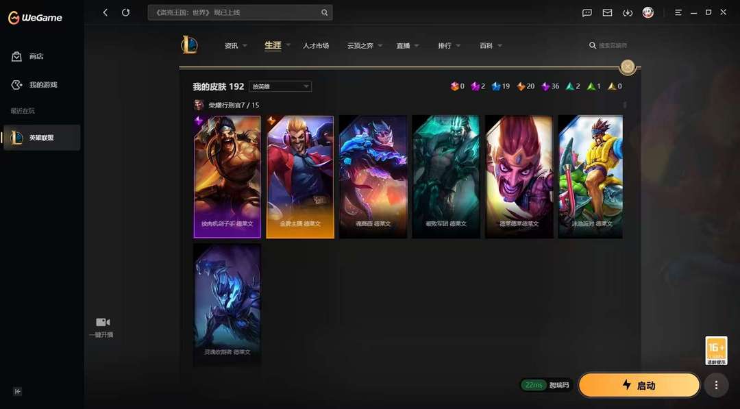 热门的英雄皮肤都有 单双段位铂金二 可排位