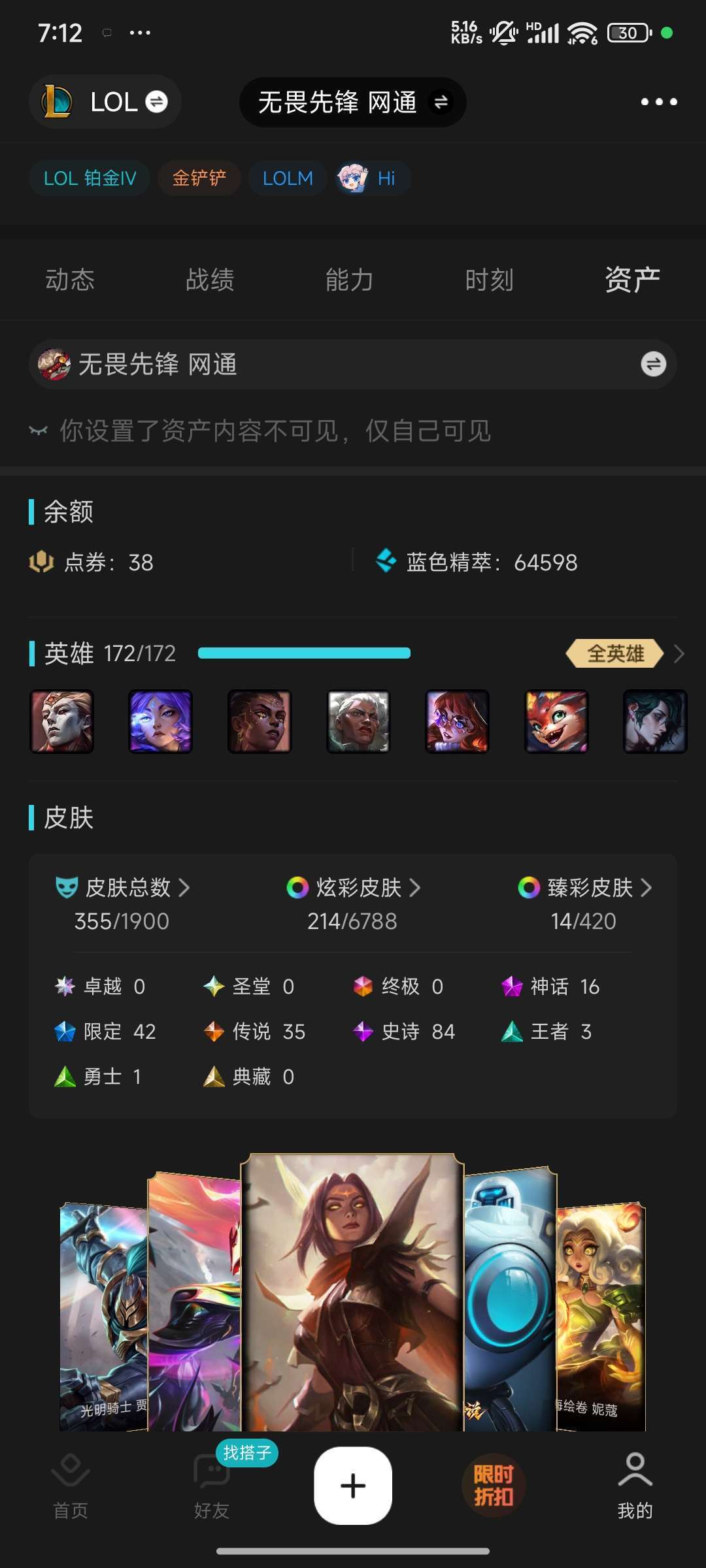 全英雄,16神话,42限定,不可排位,自玩号