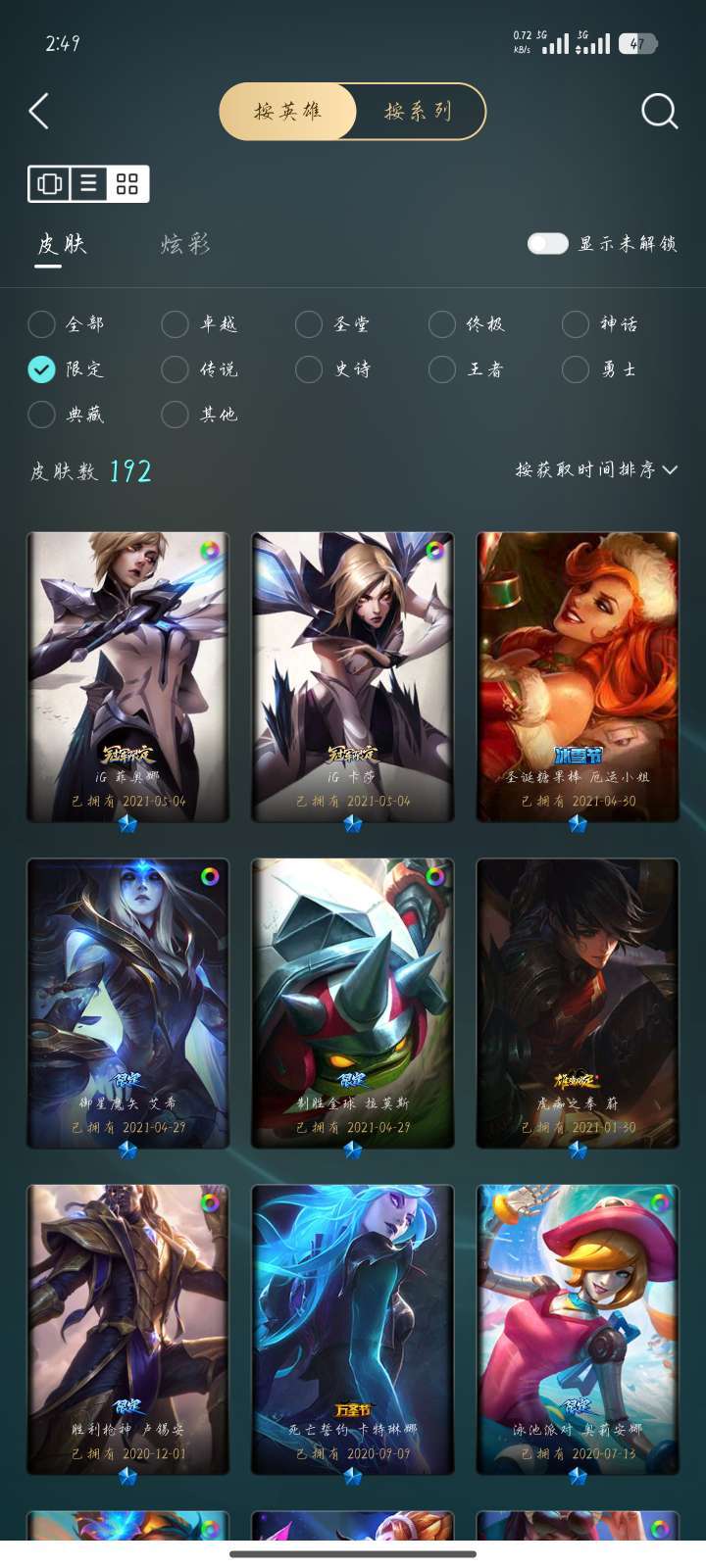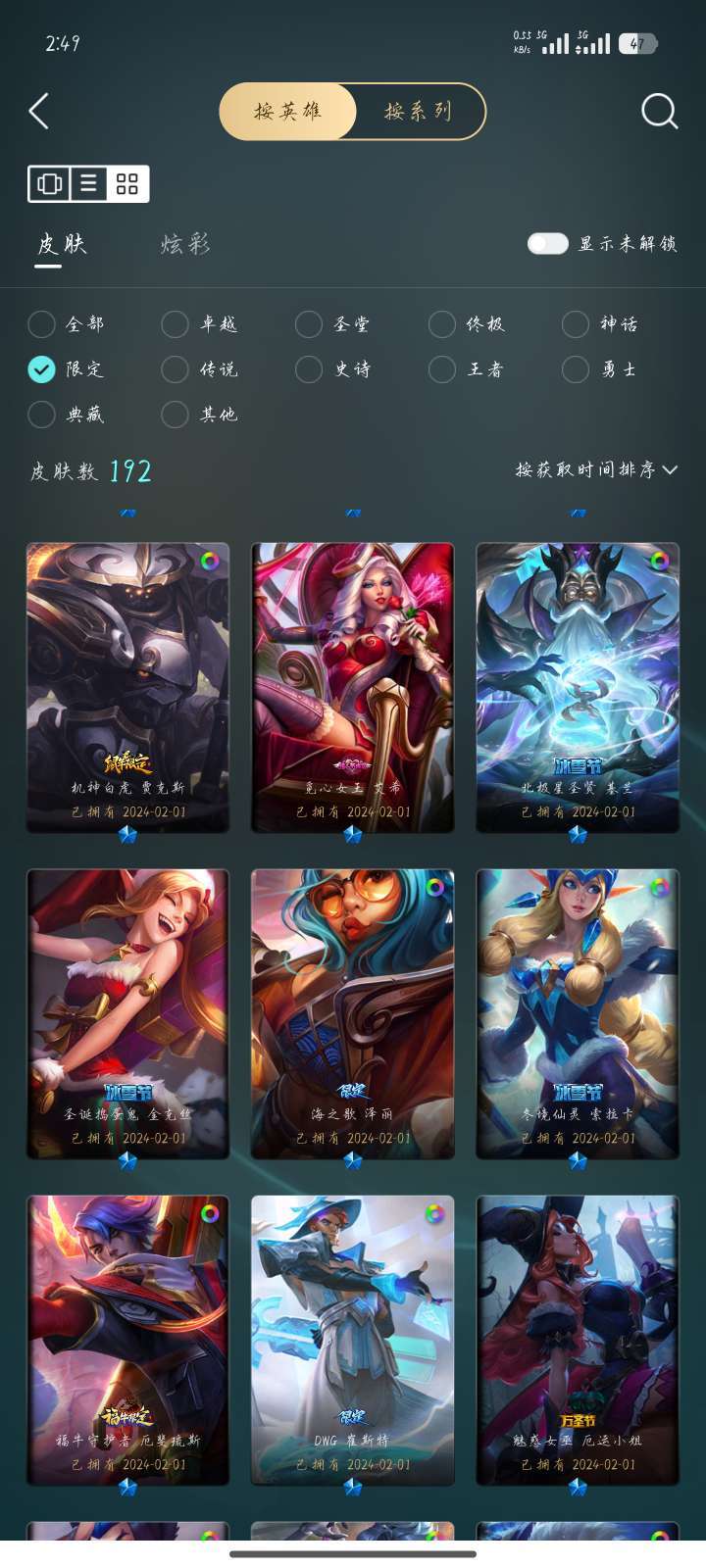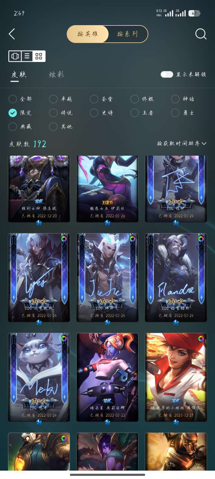 圣堂佛耶戈+龙虾+玉剑男刀+EDG+IG+各种高质量限定传说皮