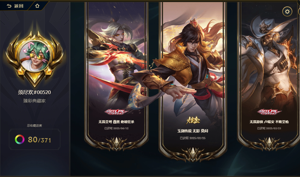 祖安⭐️不朽卡莎⭐圣堂金克丝铁男⭐️沉溺暗影卢锡安⭐️莲花温泉阿狸⭐ 神话诺手亚索⭐80+ 臻彩