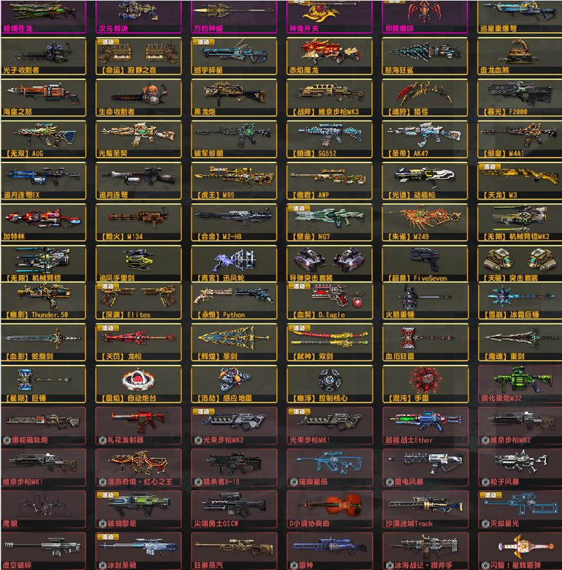 晚●特典加特林黯火●冰璃寒蟒蛇神四件套龙神威次元天使雷●光束套维京套闪电野牛●重铸鲨鱼锤怀旧套去雾