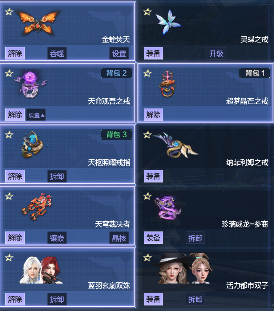 装备描述:号主Q:衣③遛一遛武器吧⑨叁 猎场角色戒指:精绝幻化莱纳/元+天命戒/超梦戒 猎场装备:最强神御天耀+山海星寰+六核天帝神凰+幻海寰宇 猎场头盔:霜庭之怒+暗星王冠+瀚海头+赤龙 猎场伴生灵:蓝雨玄扇+都市双子+双龙 猎场其他:双三级战甲⭐ ⭐塔防:变身英雄龙溪⭐潜影可以放3个英雄的⭐极限69个格子⭐三级百宝箱 登录不上就多次登录软件问题,还是希望兄弟们不要轻易撤单