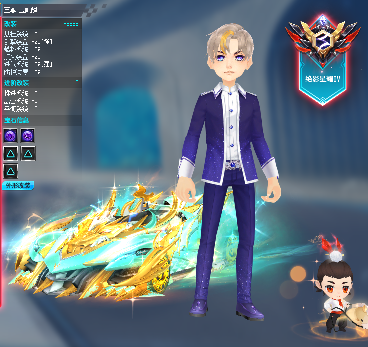 满配S车至尊-玉麒麟29双四➕最强T2奥莉娜-天穹战音5阶皮肤29三四➕竞速宠+10