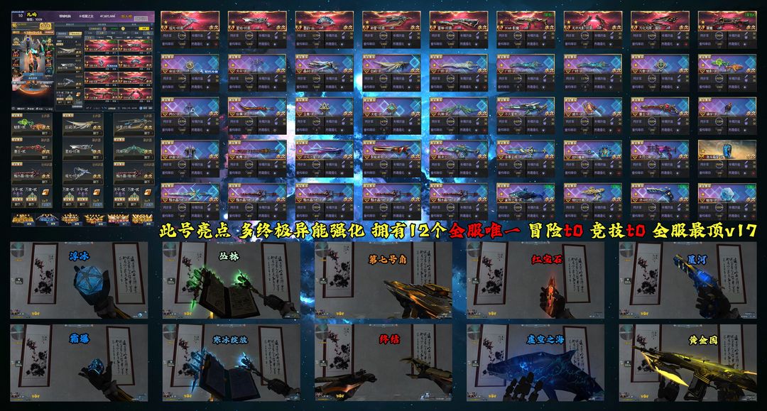 V17巅峰号✅十二款全服唯一皮✅瑶光终焉命运贰✅4700万六级抗✅终极异能魔典镇宇✅全彩金炽焰派拉