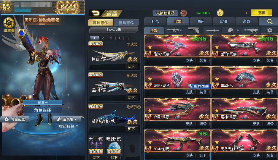 装备描述:本号亮点:终极异能魔典✅终极暗蚀✅终极冰雷✅终极相位✅终极爆裂✅终极镇宇✅终极鲨戮✅终极决斗 多款全服唯一皮:丛林◆寒冰绽放◆浮冰◆霜爆◆第七号角◆终结◆红宝石◆虚空之海◆星河◆ 传说武器:瑶光终焉◆星珀终焉◆龙息·终焉◆墨韵·合◆碎星·终焉◆雷神·终焉◆SCAR-影魔◆无尽光影·终焉◆M4A1无限EX◆屠魔◆AK47天神◆ 彩金武器:命运贰◆天平贰◆巨阙贰◆广陵贰◆万象贰◆魅影贰◆两仪·贰◆纵横·贰x2◆灰核贰x3◆天枢·贰◆玉衡·贰◆风神·贰◆不灭星核·贰◆撼天·贰◆塞壬·贰◆无暇·贰◆镇宇·贰◆锁宙·贰◆蛇舞·贰◆次元之星·贰◆裁决之炎·贰◆黯水晶-绝·贰◆涤罪圣辉·贰◆封印魔典·贰◆白夜统刃·贰◆