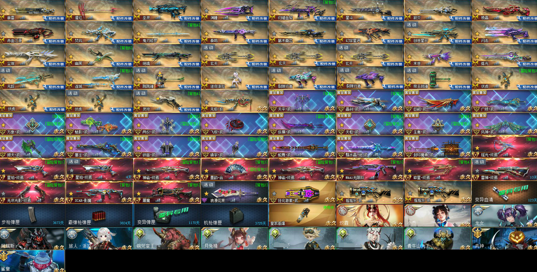 装备描述:配件崩雷丨猩红丨巫灵丨渊瞳丨归墟血契丨星斗丨寂灭丨棱晶丨赤血之源丨焚风丨鬼刃修罗丨奏鸣丨藤木蔓芯丨幻宇星涡丨创世星环丨闪击丨尘埃丨幽冥丨绝境丨玄天 x3丨末世丨弧光丨无踪丨连城丨跳跳锤丨迷你派拉丨裂隙行者 x2丨帝王战锤丨伏虎 x3丨灵狩丨 彩金无极极丨天平贰丨晶刹贰丨巨阙贰丨广陵贰丨万象贰丨魅影贰丨两仪贰丨飞梭贰丨纵横贰丨天枢贰丨玉衡贰丨风神贰丨撼天贰丨塞壬贰丨锁宙贰丨镇宇贰丨蛇舞贰丨黯水晶-绝贰丨封印魔典贰丨 传说瑶光终焉丨星珀终焉 x2丨神谕终焉丨墨韵合丨神谕终焉丨无限EX丨碎星终焉丨雷神终焉丨无尽光影终焉丨SCAR-影魔丨屠魔丨 其他浪漫花束丨激素贰丨摇摇乐 x2丨 道具变异血清丨弹匣丨 皮肤皇家高爆丨 角色炽霞丨小乔丨龙女丨阿瑞斯丨派拉丨蛮王丨月兔精丨童子丨猫妖丨青牛山大王丨丧钟丨鲨皇丨