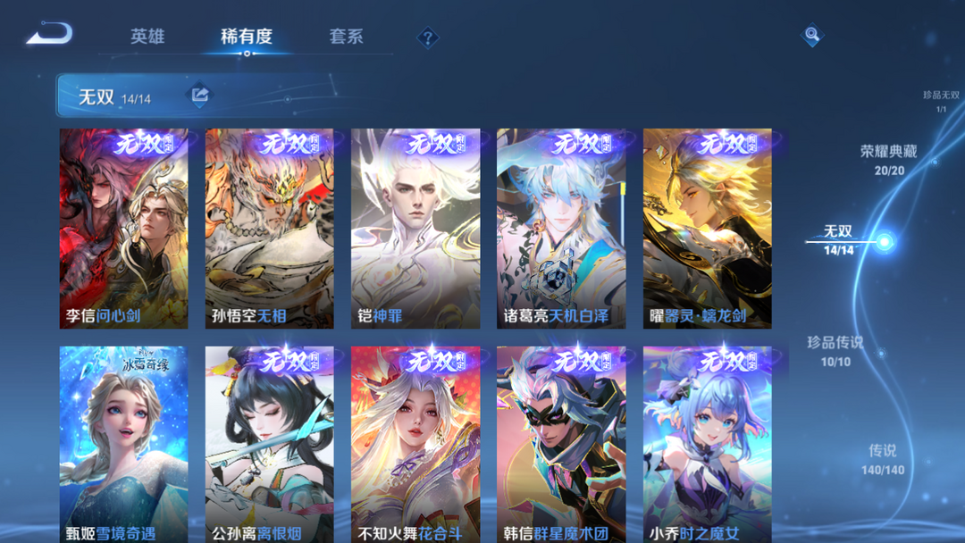 顶氪号一皮不缺❤李信新无双❤全马年限定❤满无双满传说满珍品❤满荣耀水晶6小兵