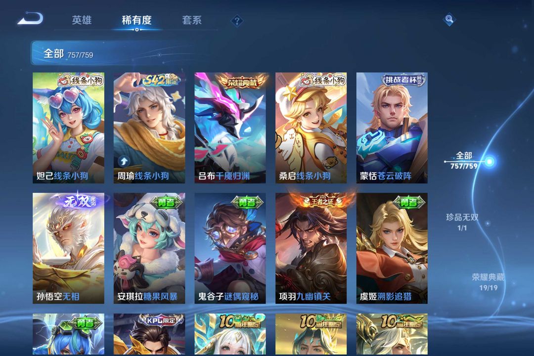 757皮|不禁言女号|只缺①皮肤〖吕布典藏❤猴子无双〗满典藏✨满星元✨满按键✨满无双✨满珍品✨满传说