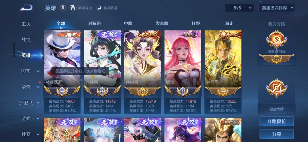 极品满皮 踏浪归马年全套 李信伽罗全套 新天幕灵宝♈74段发育路+3大国服马可公孙离虞姬⚡满典藏无双