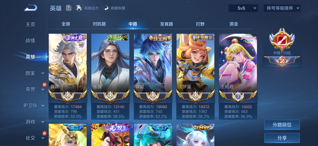 极品女神号-中路110段-游走99段-13大国服8小国服-满皮肤满水晶