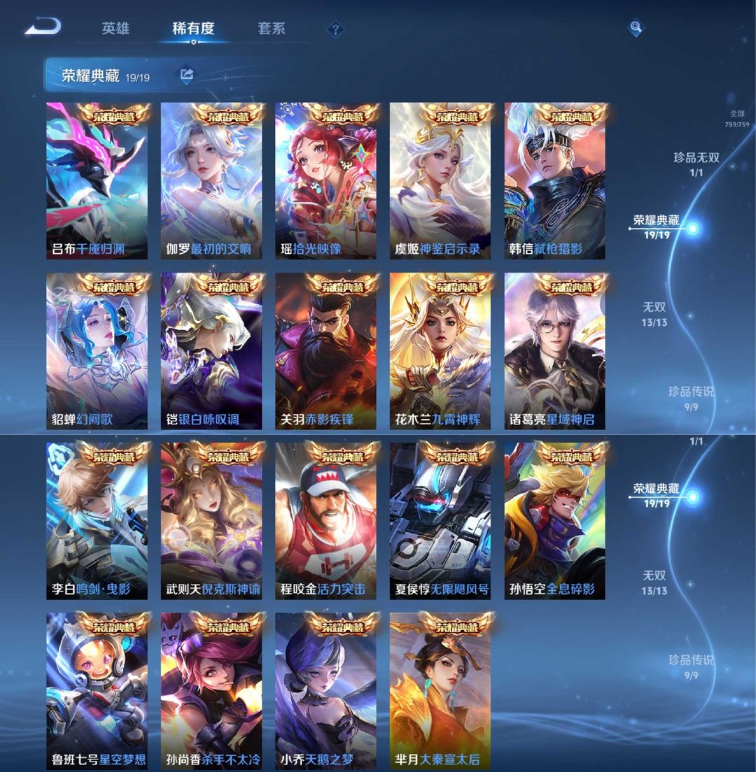 759皮〖不禁言❤真满皮〗玄策大国标✨满典藏✨满星传说✨满按键✨满无双✨满珍品✨满传说✨六小兵